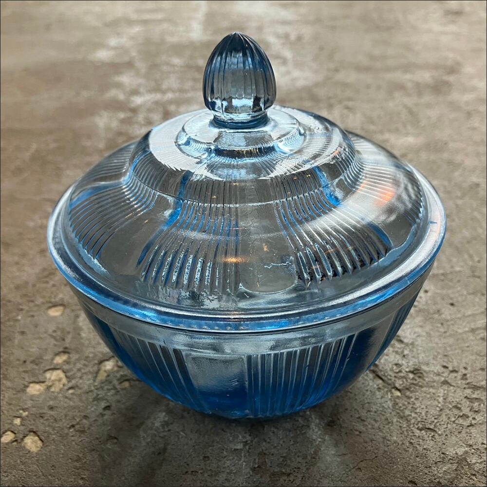 時代感のある風合いが味のある古い戦前ガラスのキャンディポットです。