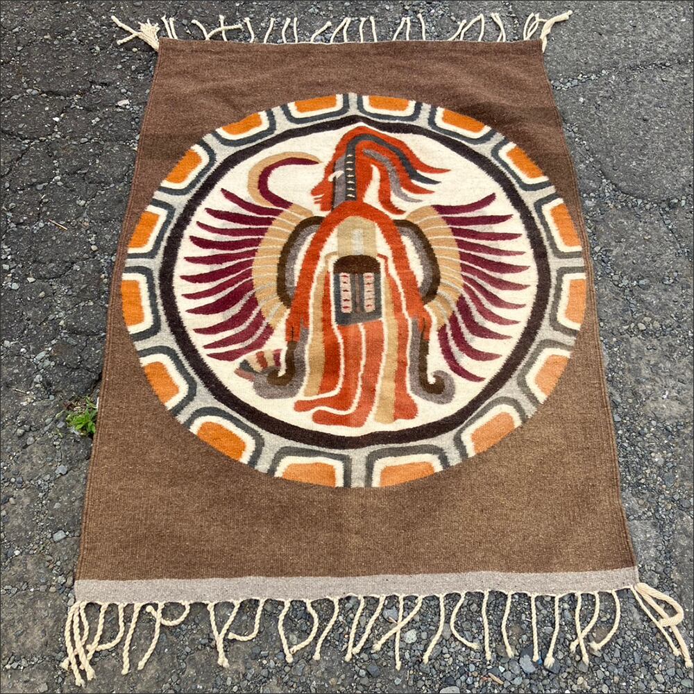 プリミティブな絵柄と配色が印象的なキリムラグです。
