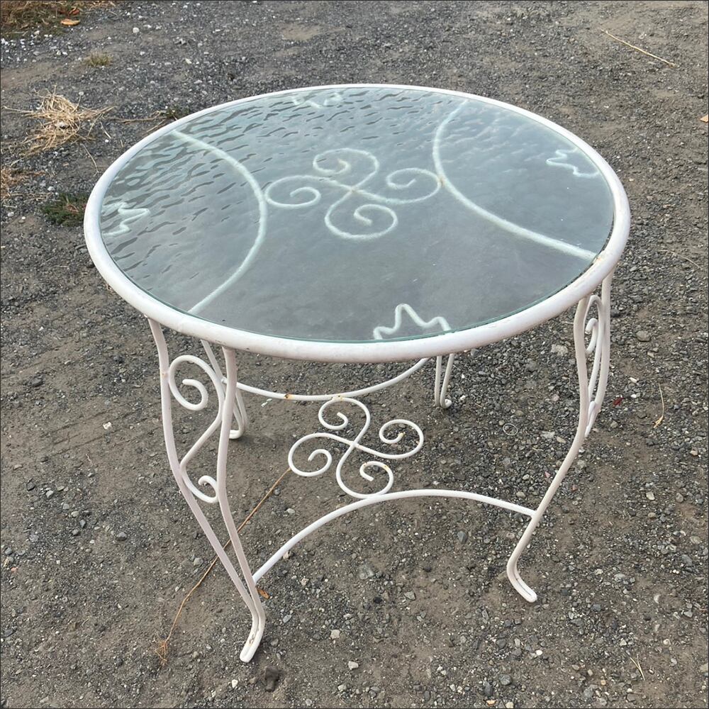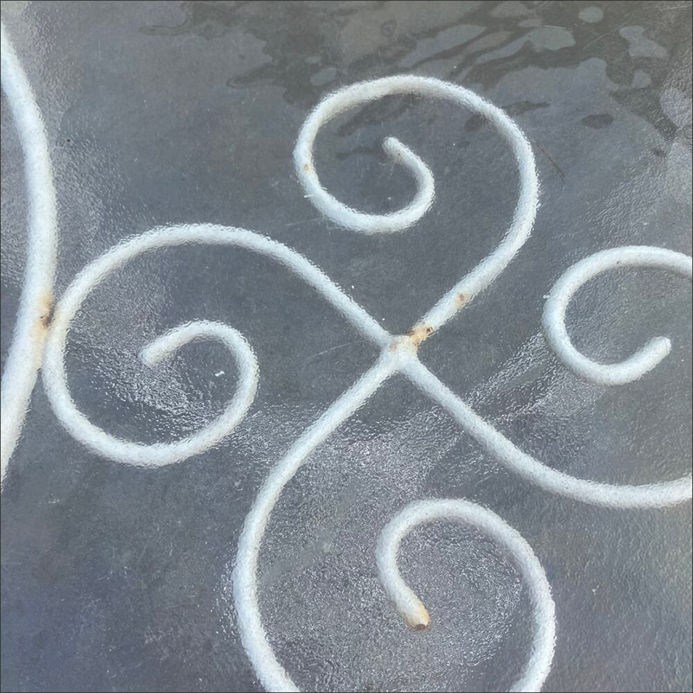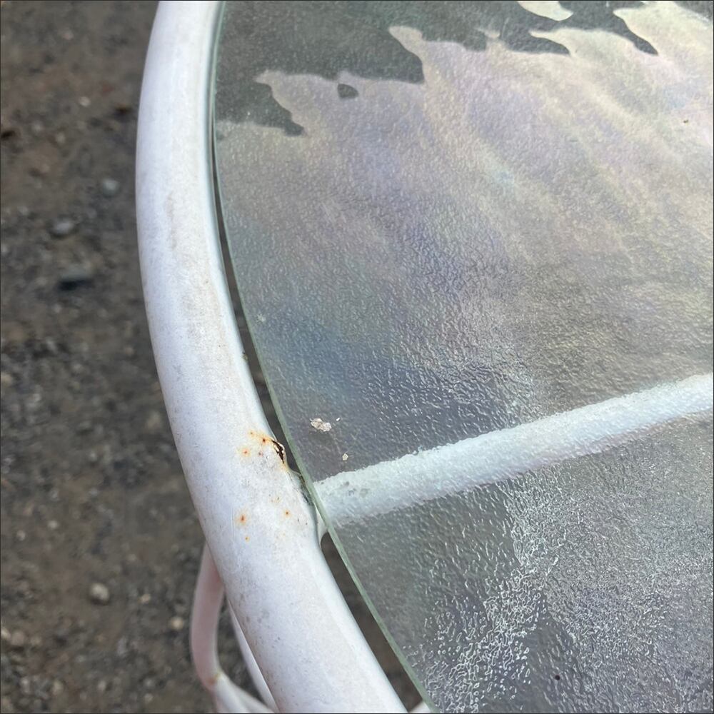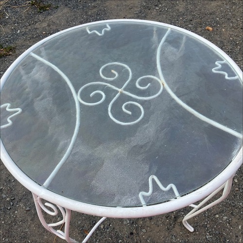 細身のアイアンフレームにガラス天板のヨーロピアンな雰囲気が印象的なテーブルです。