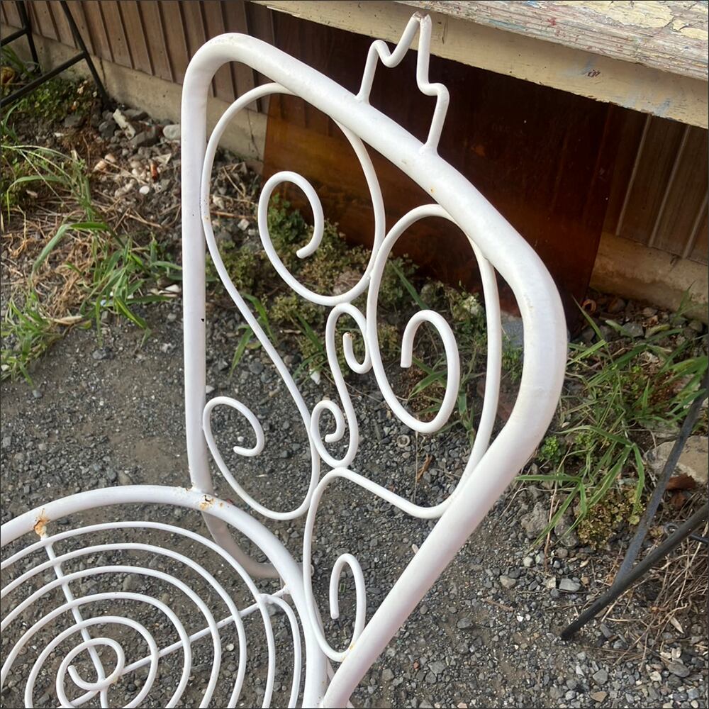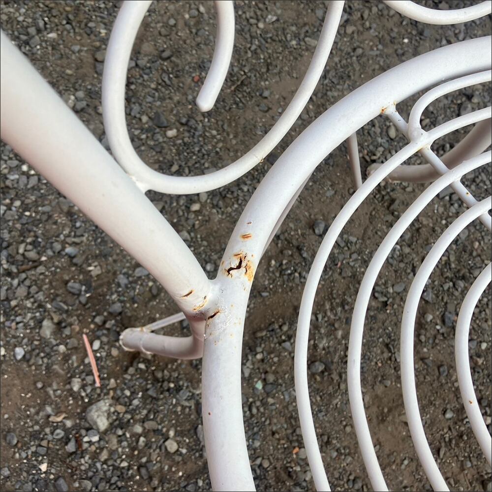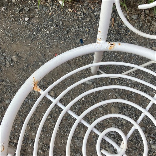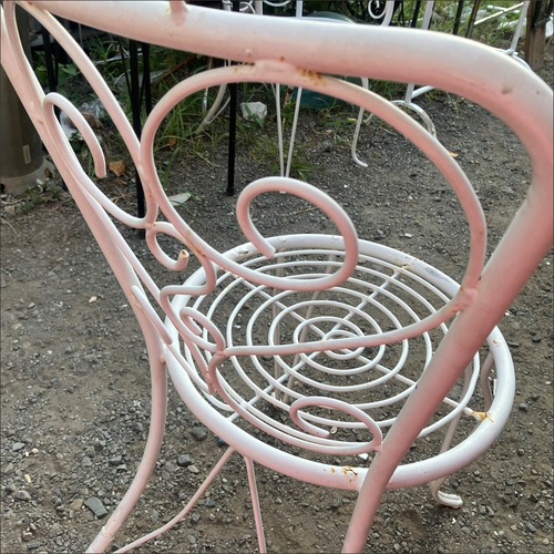 細身のアイアンフレームのヨーロピアンな雰囲気が印象的なガーデンチェアです。