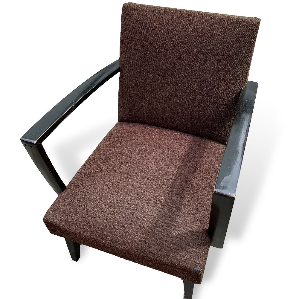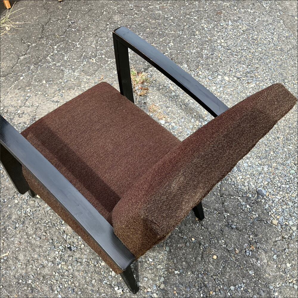 経年を感じる風合いやモダンデザインが印象的な1人掛けソファです。