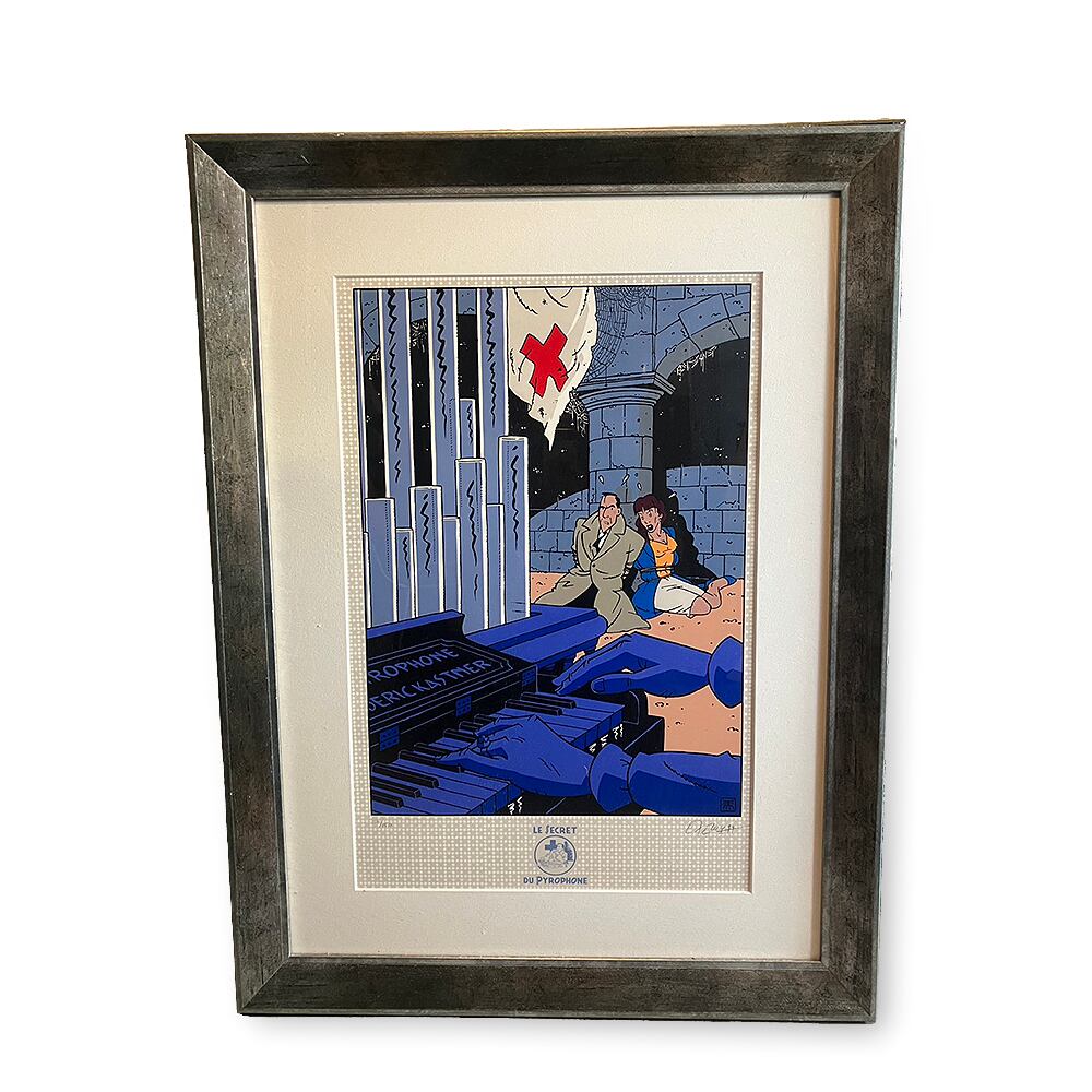 エグゼム”パイロフォンの秘密”の額装されたシルクスクリーンポスター(150/150)です。