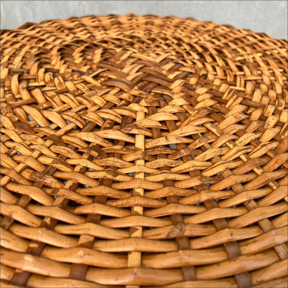 螺旋状に編み上げられたラタン製の丸スツールです。
