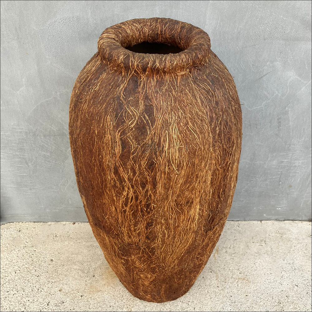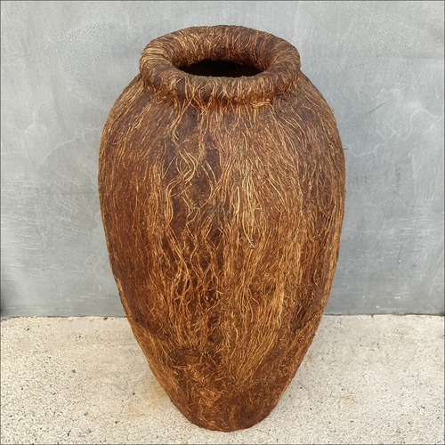 ヤシ繊維が描く模様が味のあるフラワーベースです。