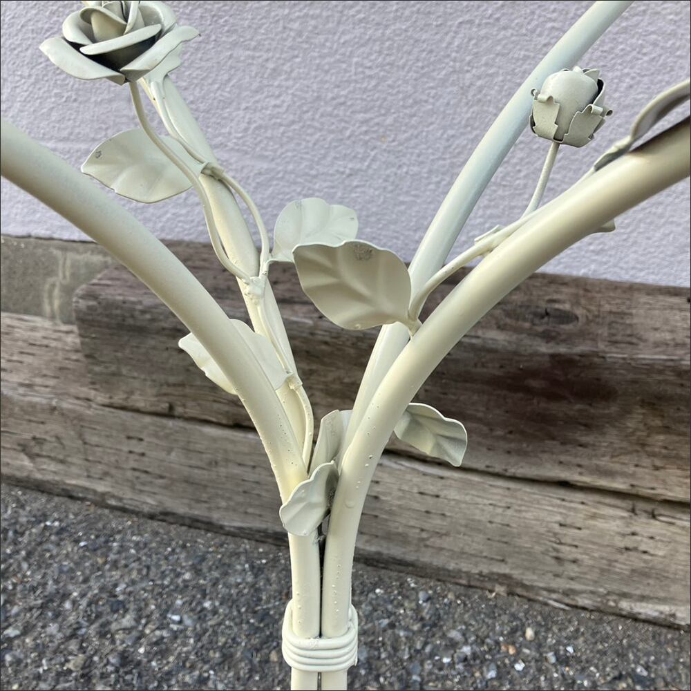 バラ型の装飾が特徴的なクラシカルな雰囲気の丸テーブルです。