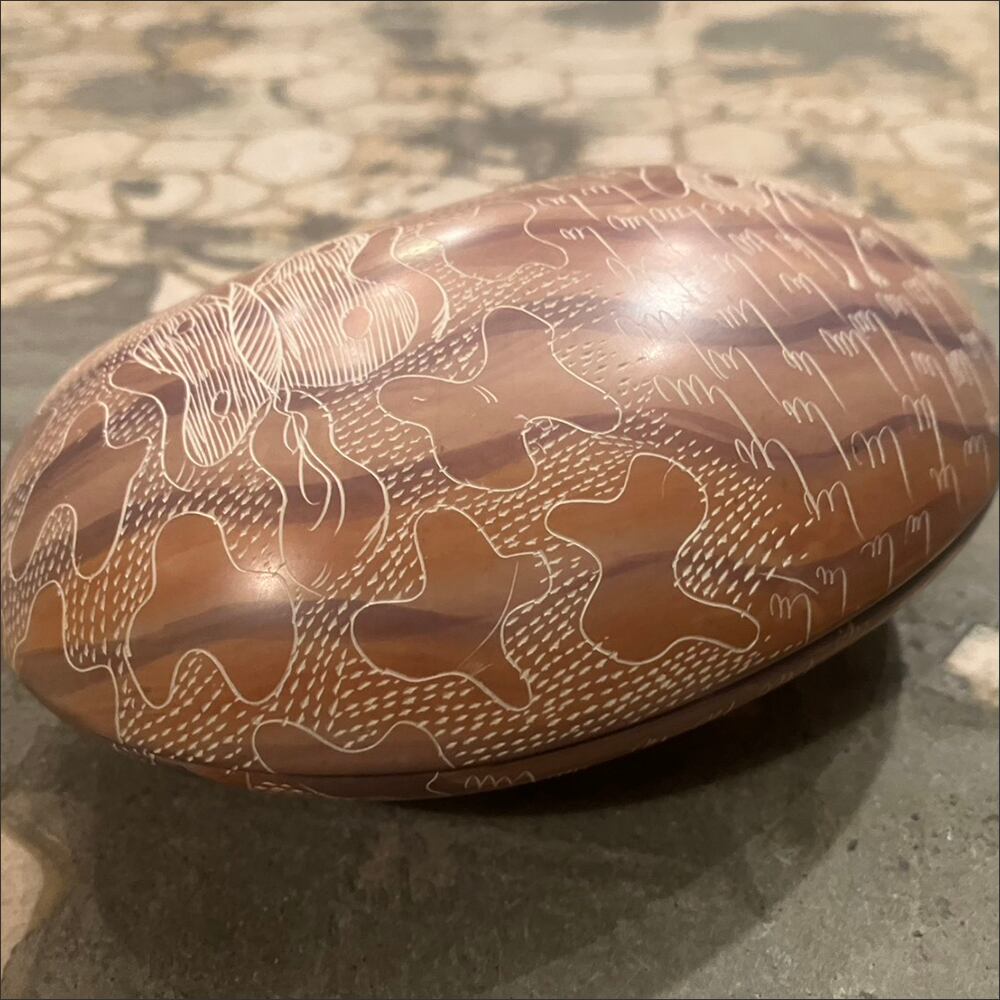 プリミティブな雰囲気が特徴的な豆型ケースです。