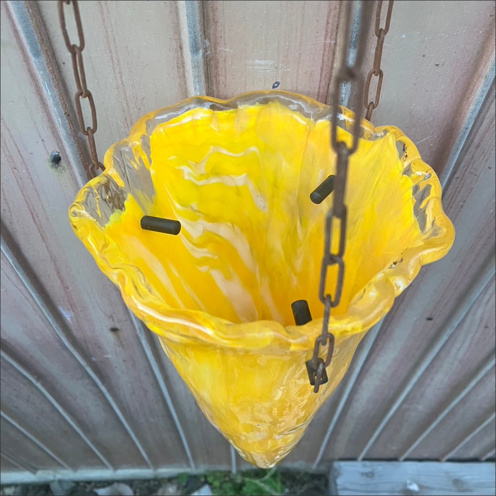 有機的なデザインが印象的な岩田ガラスのハンギングポットです。