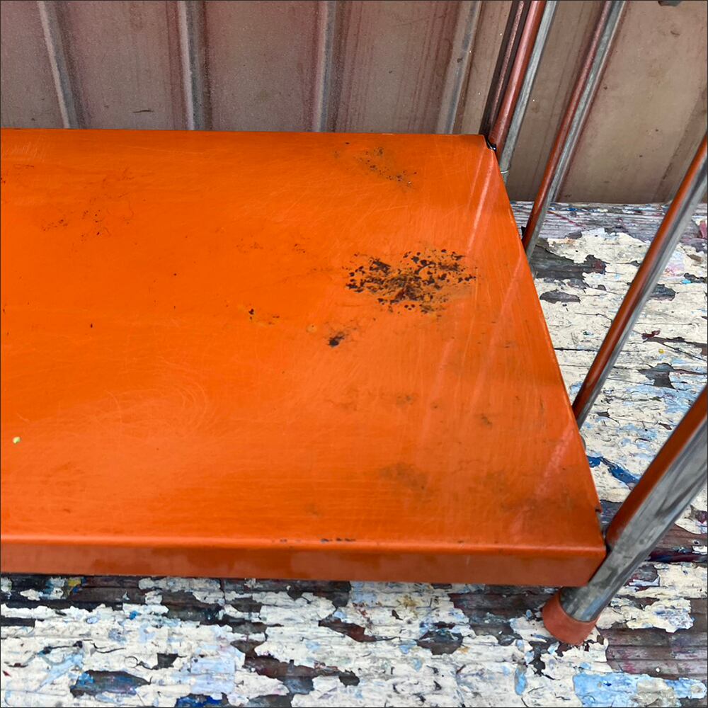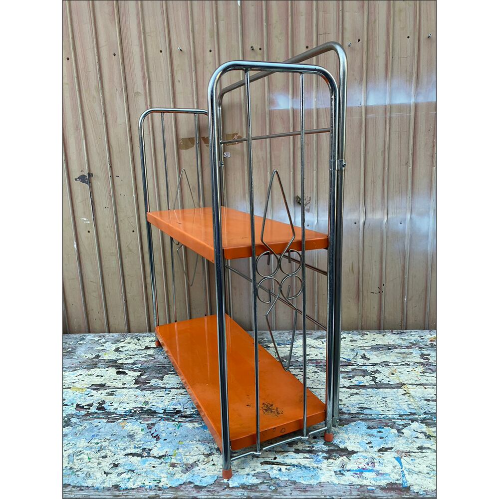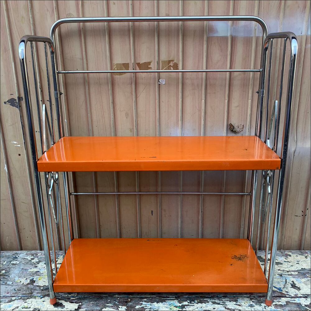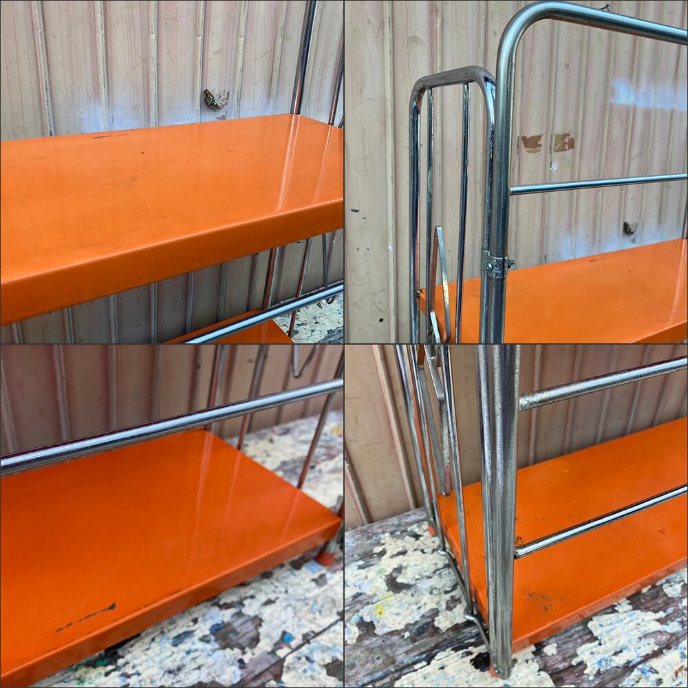 当時の品ならではのレトロな雰囲気が印象的なスチールラックです。