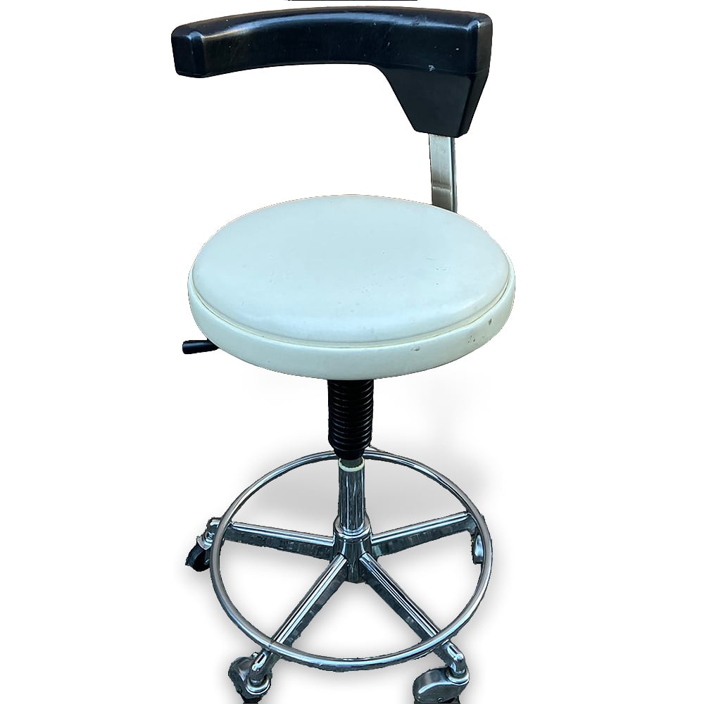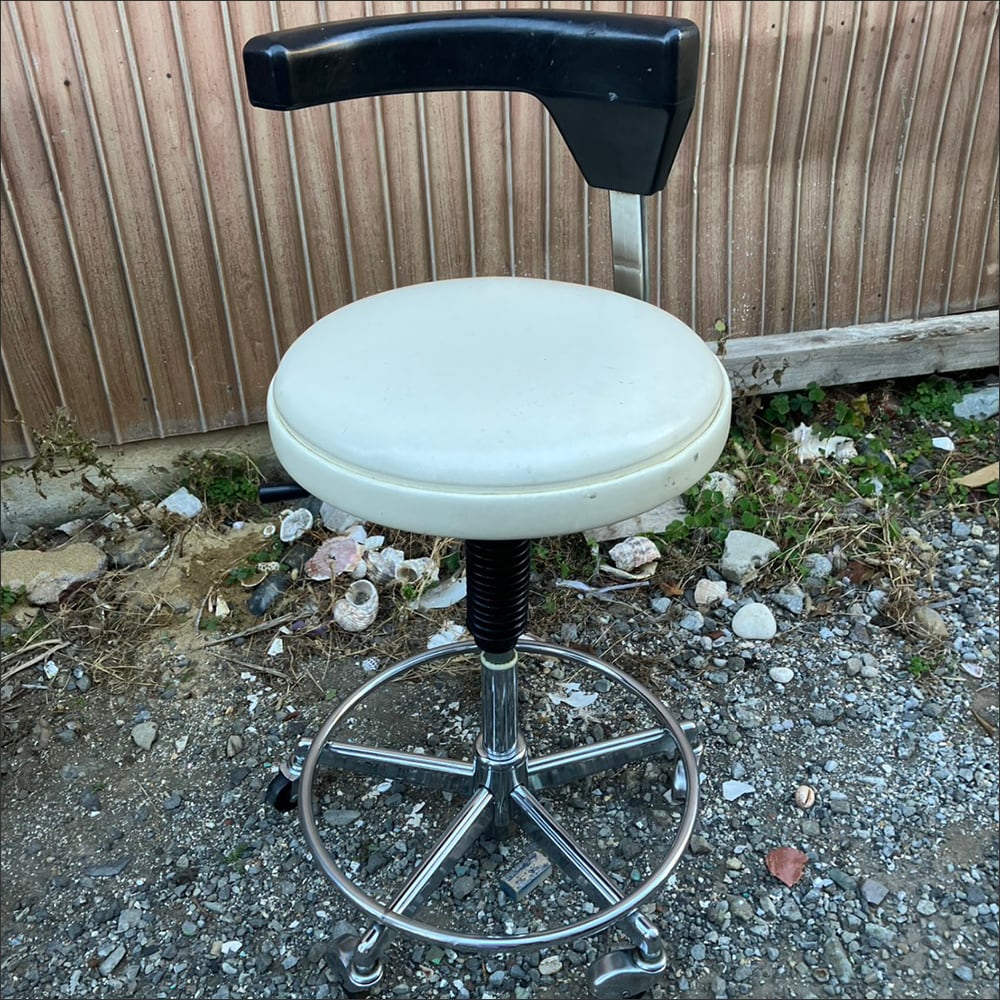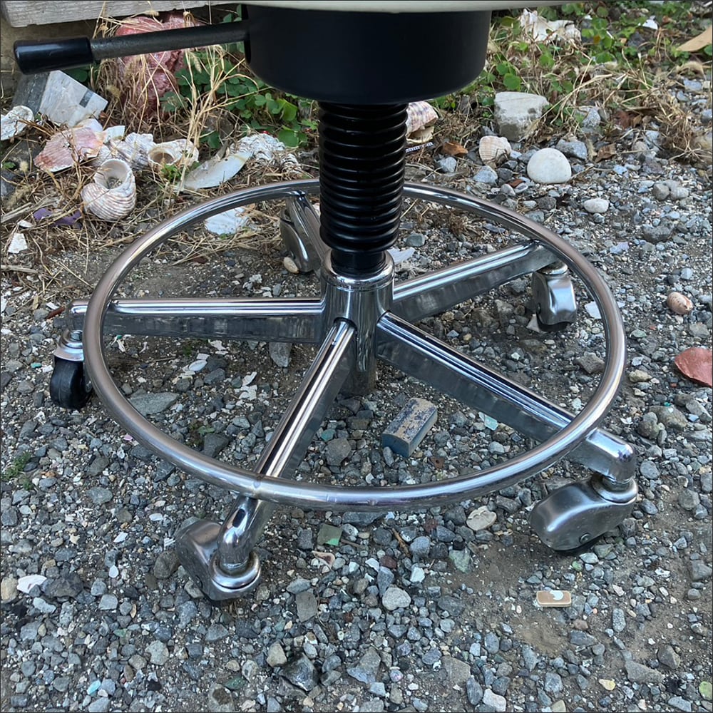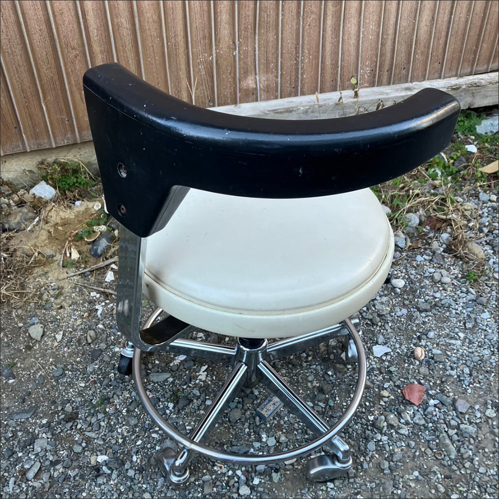 インダストリアルなデザインが特徴的なキャスター付きドクターチェアです。