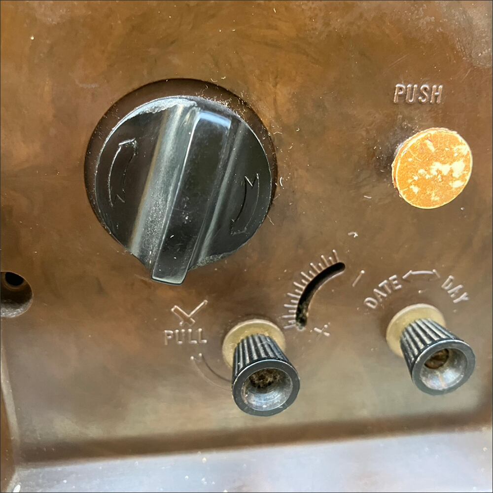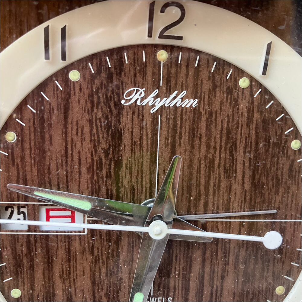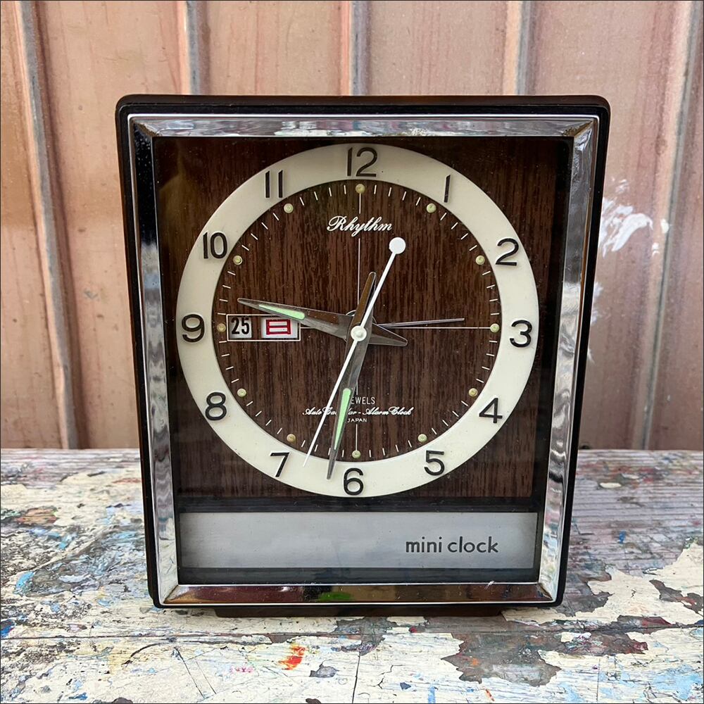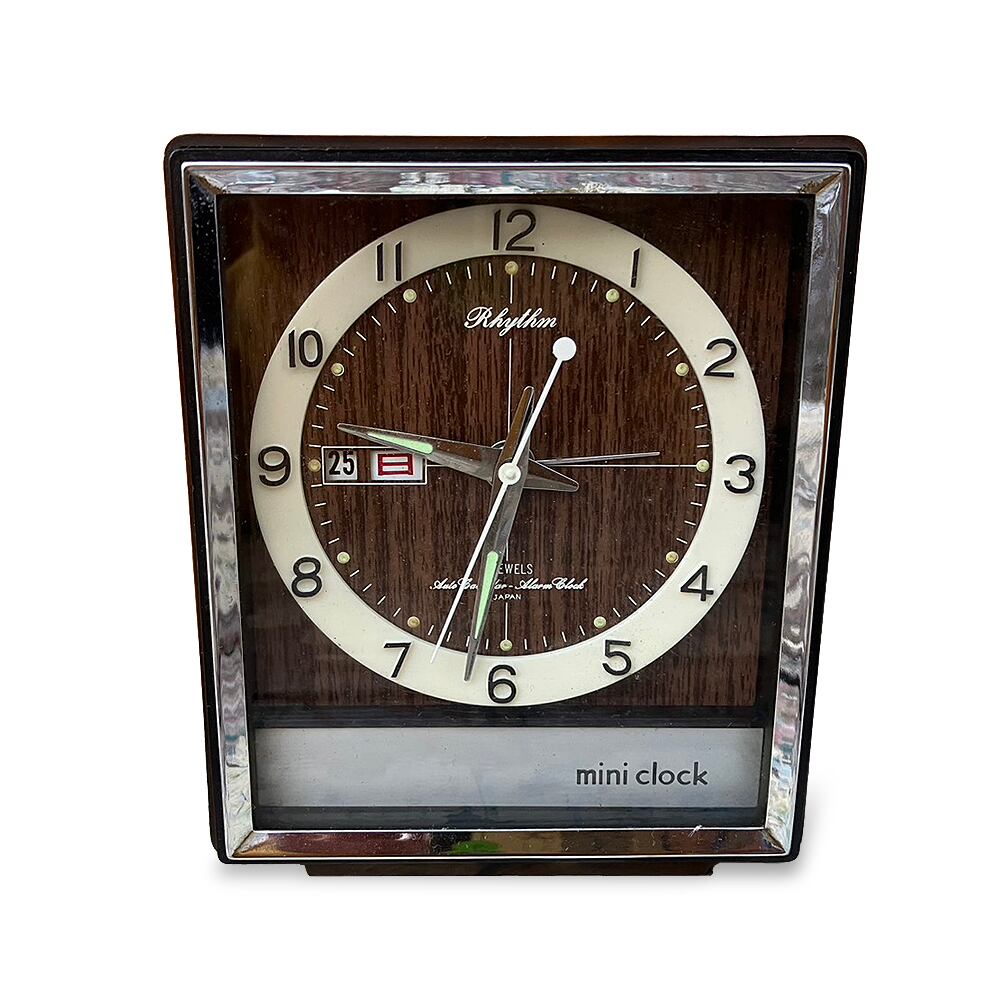 当時の品ならではのレトロな雰囲気が印象的なカレンダーの付いた小型時計です。