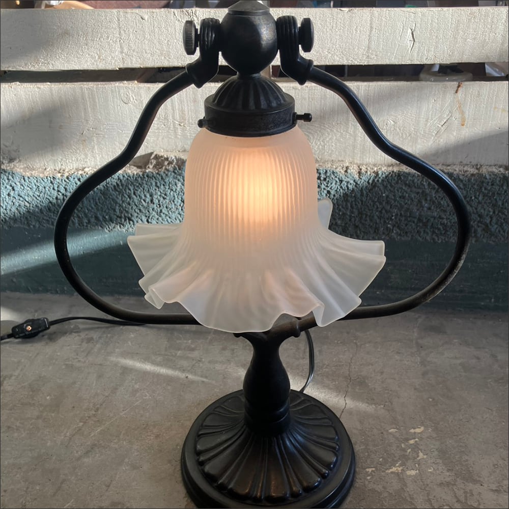 クラシカルなデザインが印象的なガラスシェードのテーブルライトです。