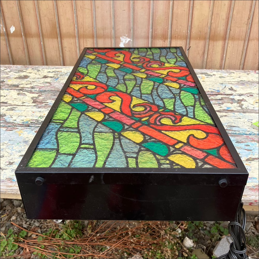 ステンドグラス風のアクリル板が特徴的なライトです。