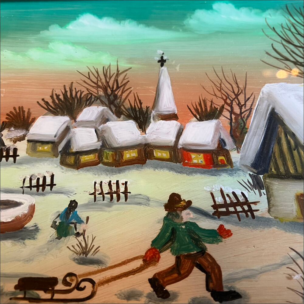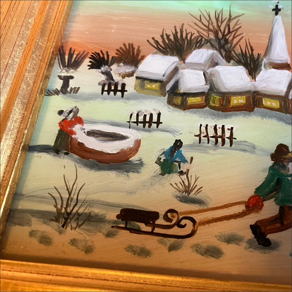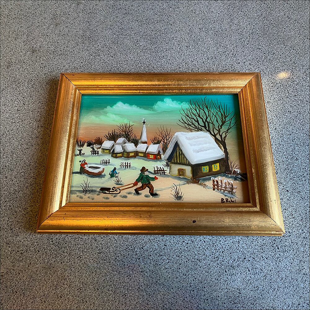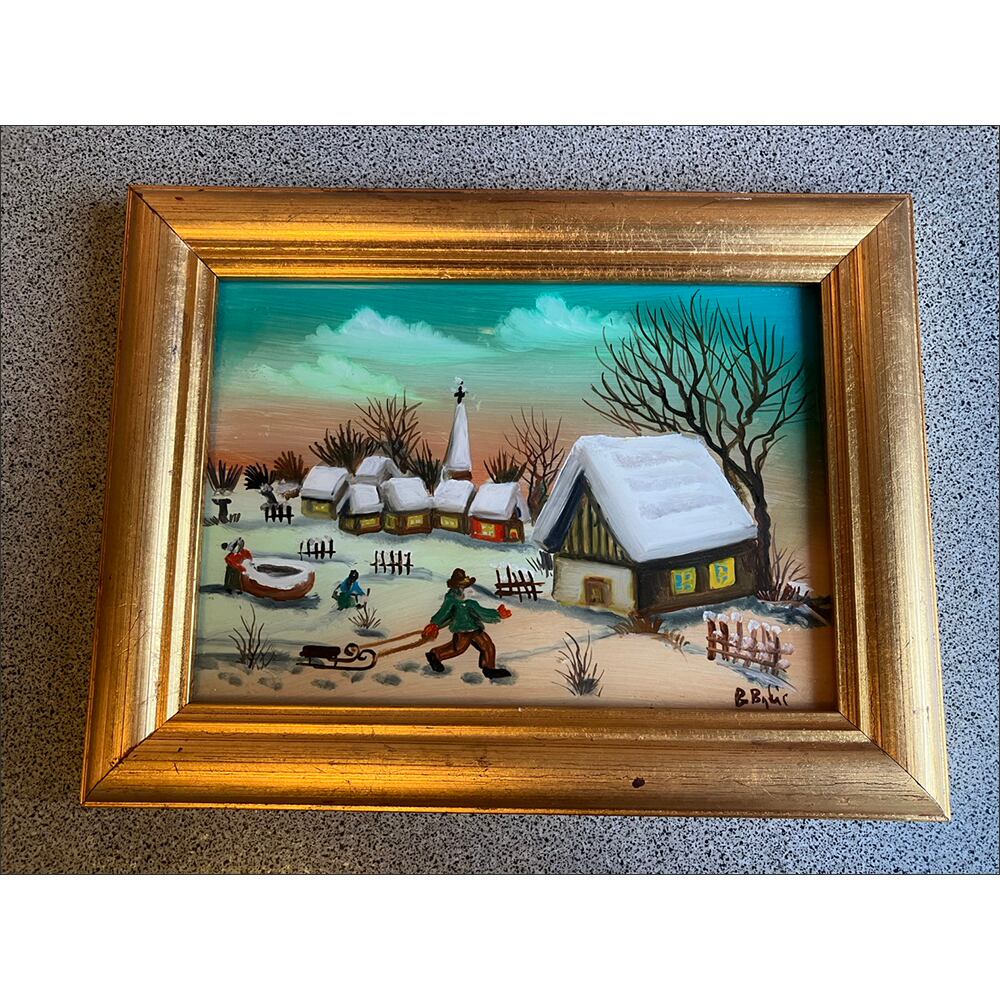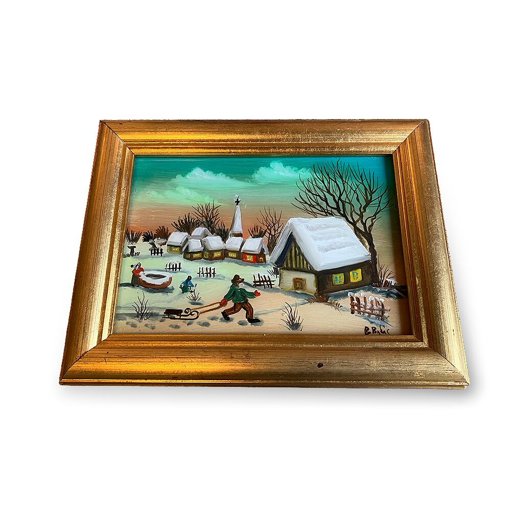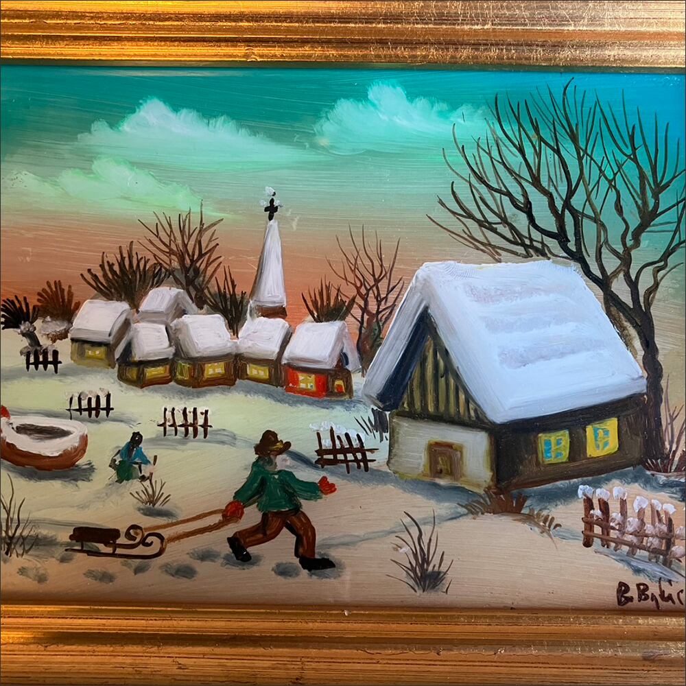 クロアチア生まれのアーティスト"ブラニミール・ビイェリッチ"の額装されたガラス絵です。