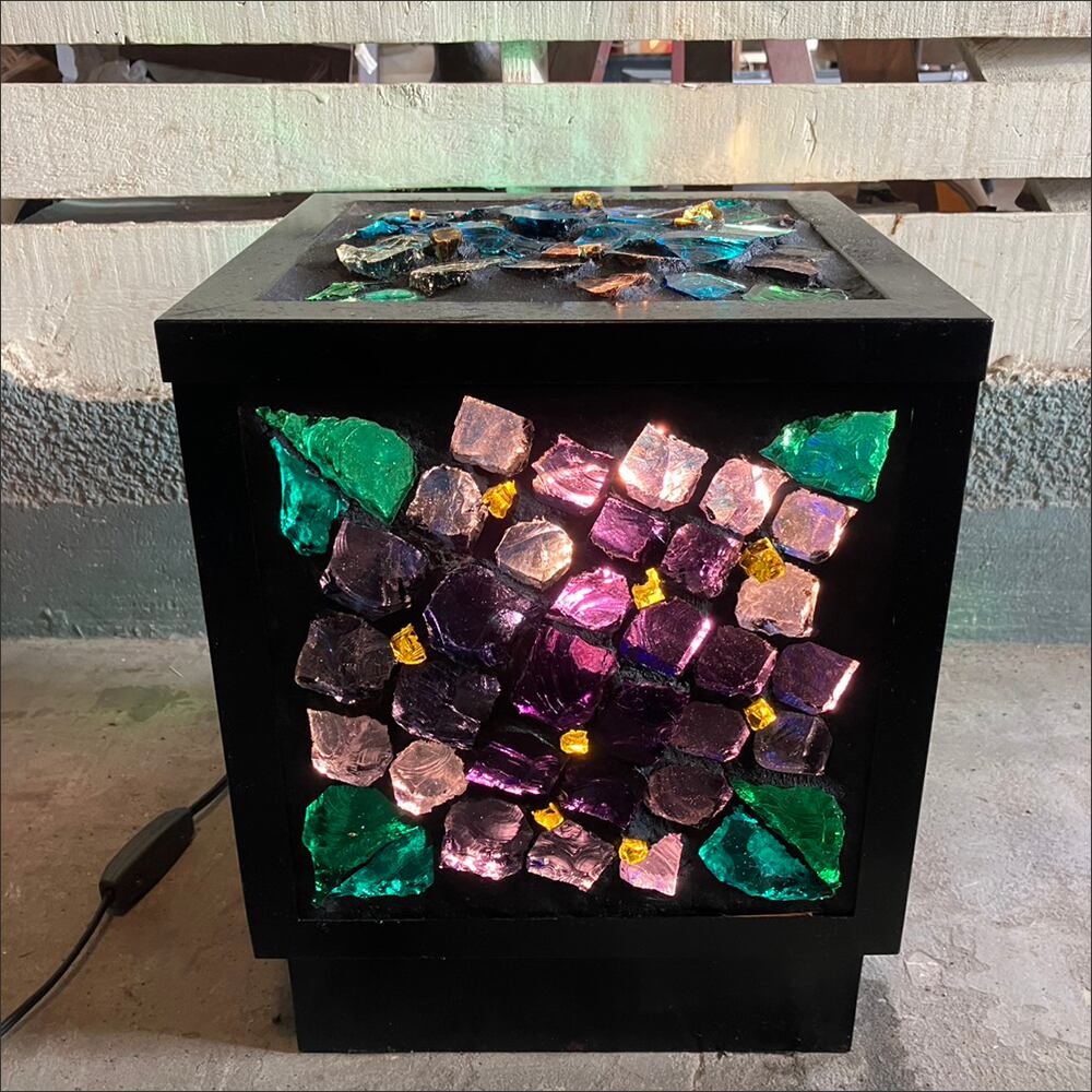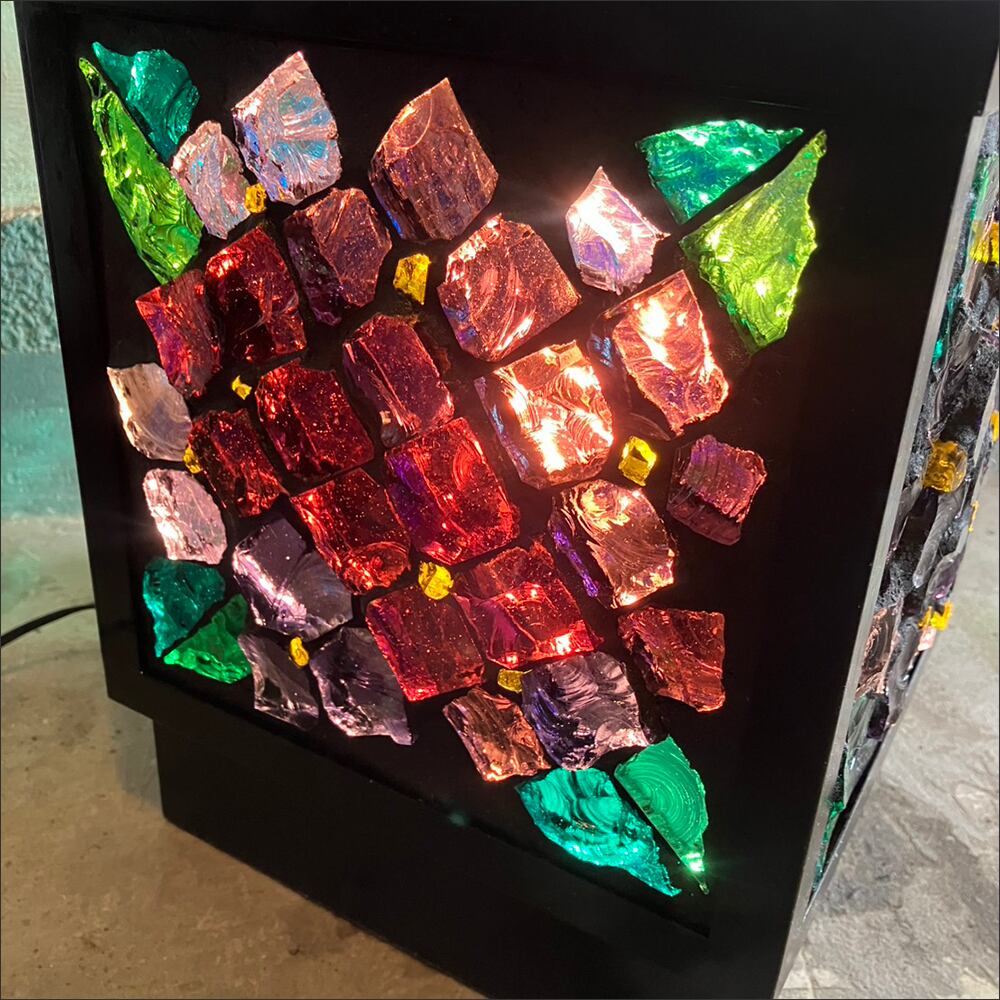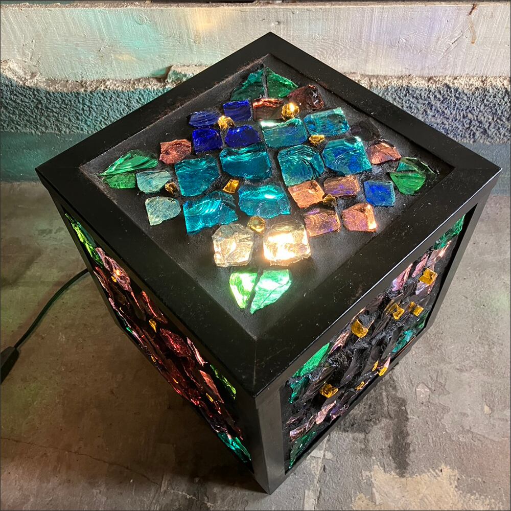 カラフルなガラスパーツを使用した四角い照明です。