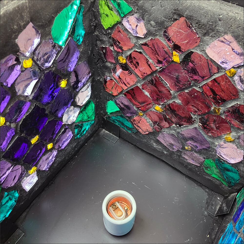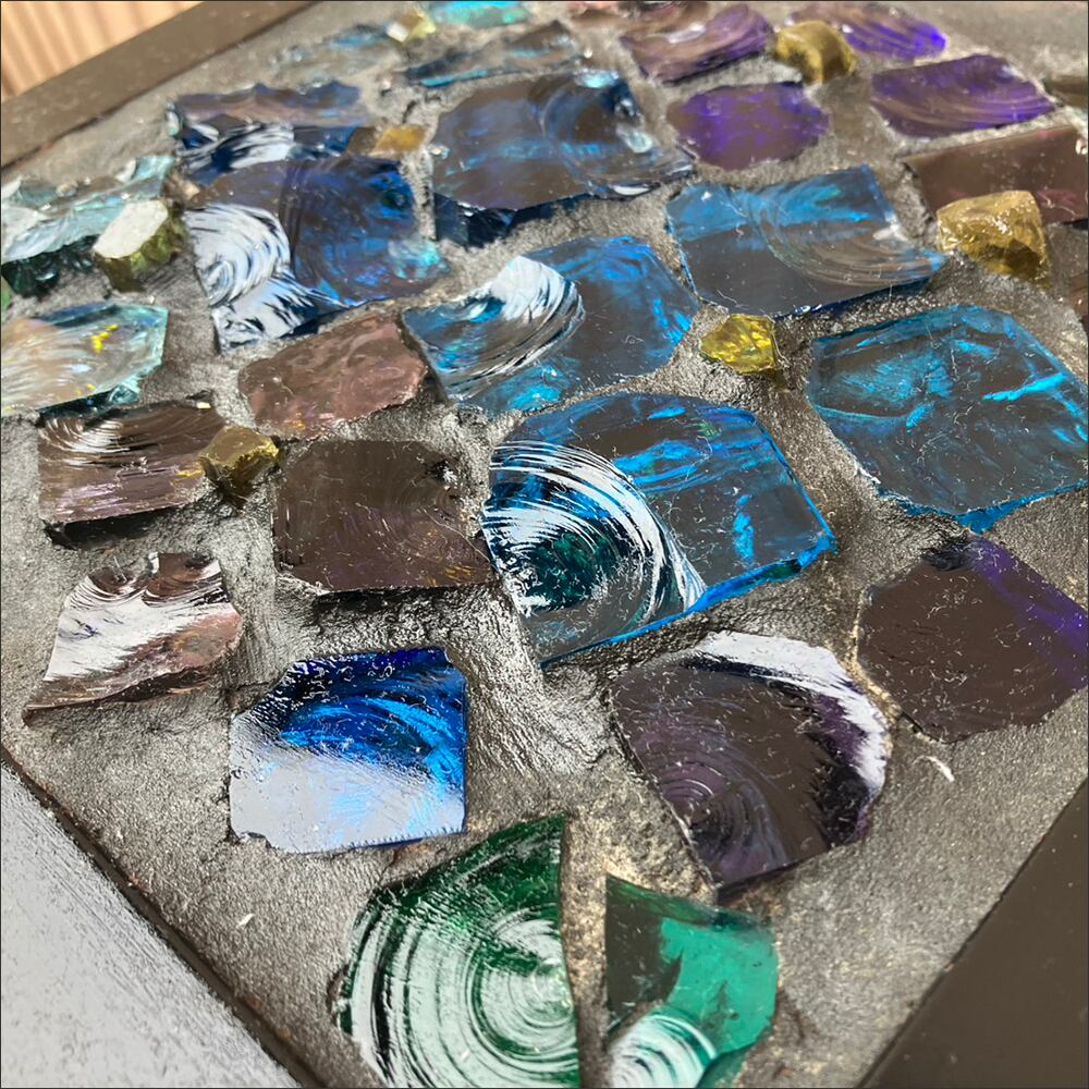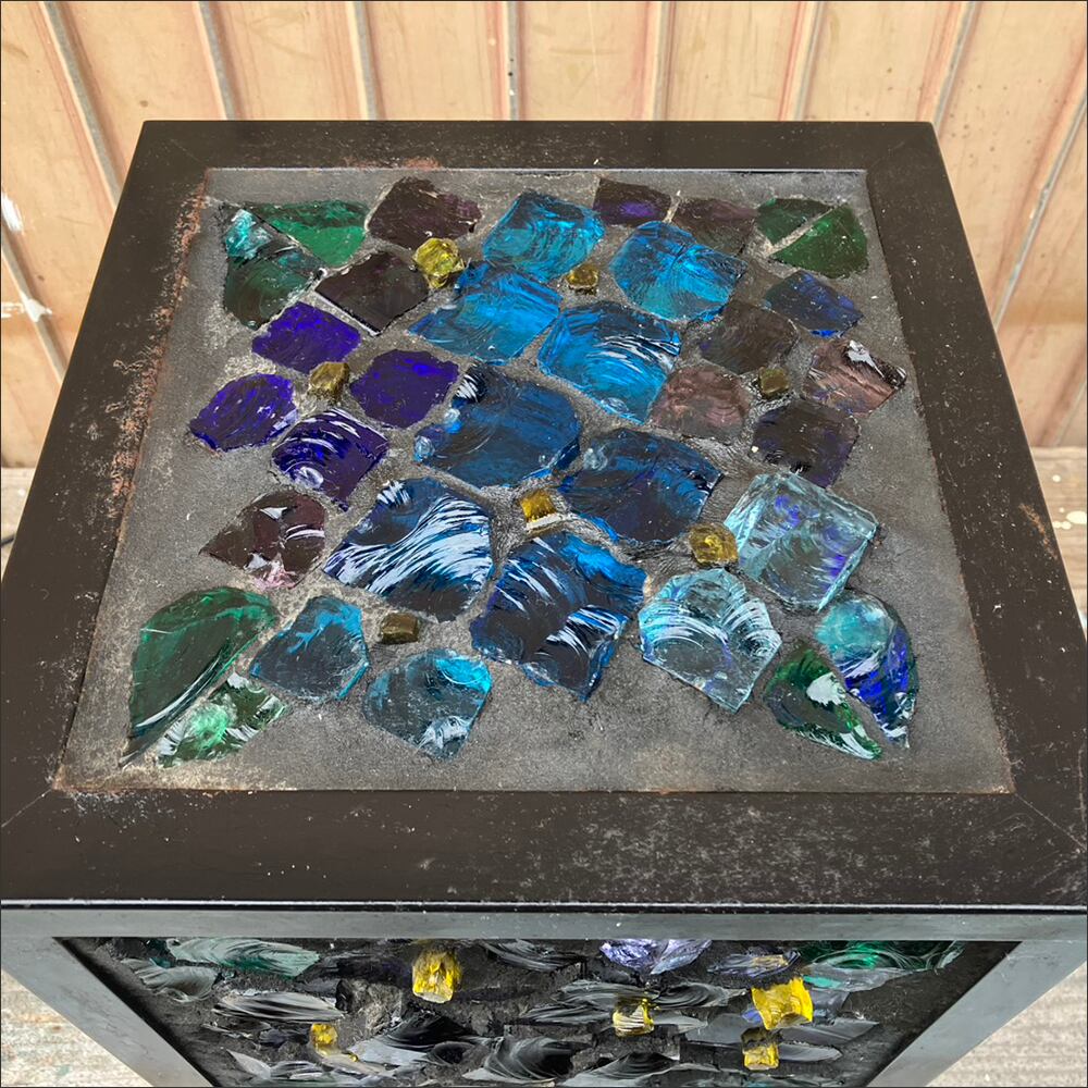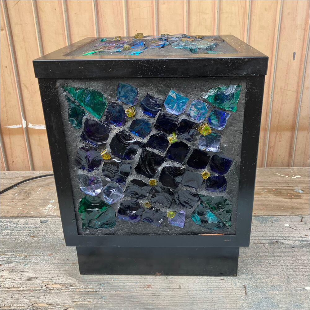 カラフルなガラスパーツを使用した四角い照明です。