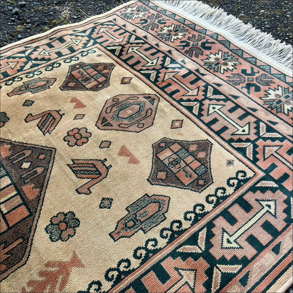 プリミティブな柄と配色が印象的なベルギー製のラグマットです。