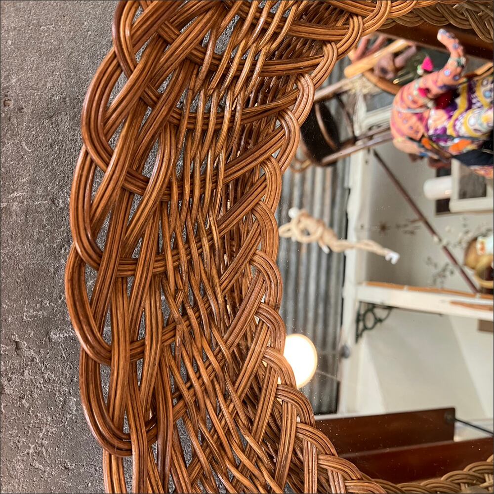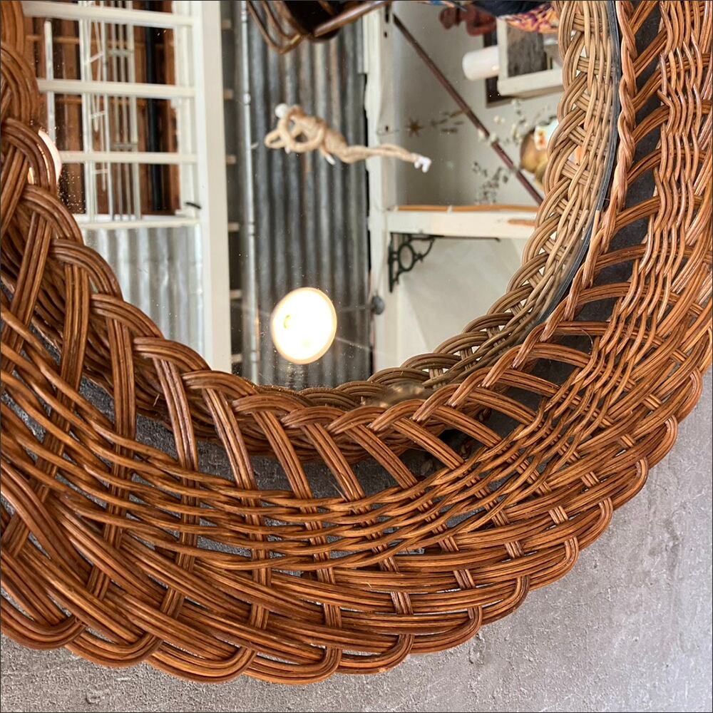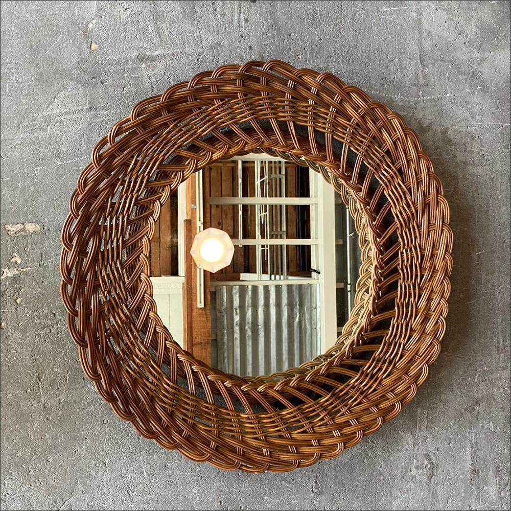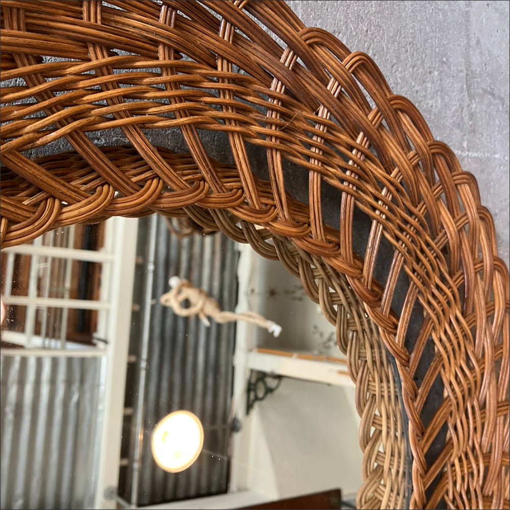ラタン編みのフレームが特徴的なウォールミラーです。