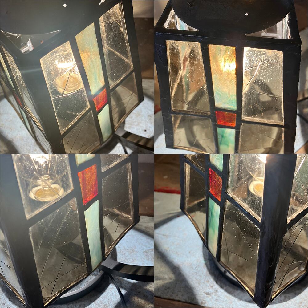 釣鐘型のデザインのステンドグラス卓上照明です。
