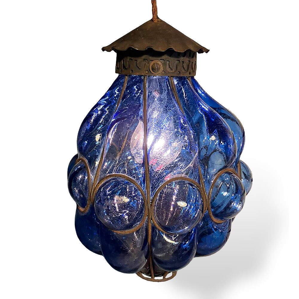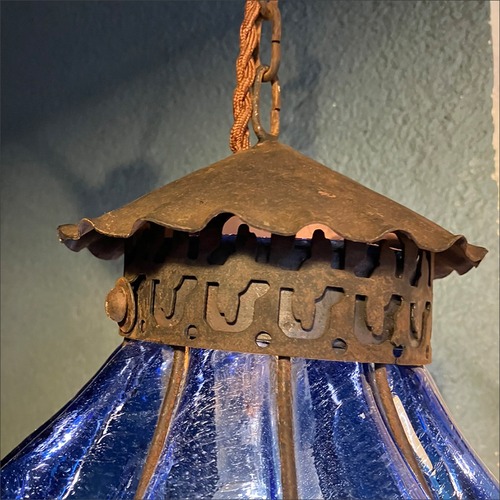 アイアンフレームにブルーのガラスが印象的なペンダントライトです。