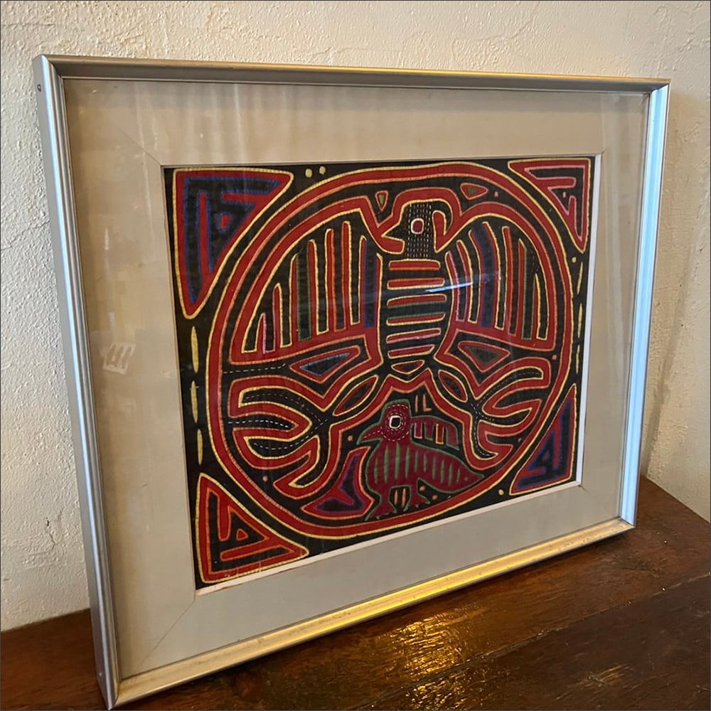 パナマの先住民族伝統の刺繍模様が印象的なアートパネルです。