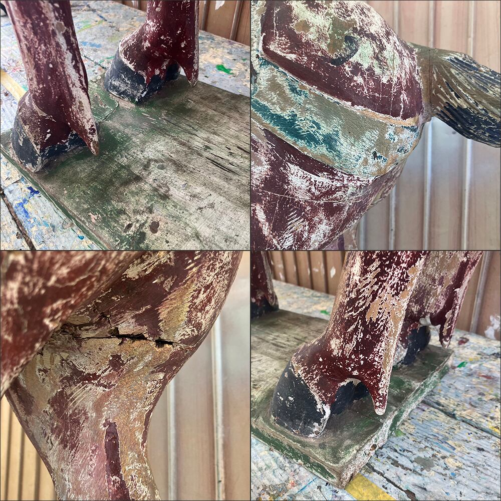 経年を感じる風合いが味のある古い中国の木馬オブジェです。