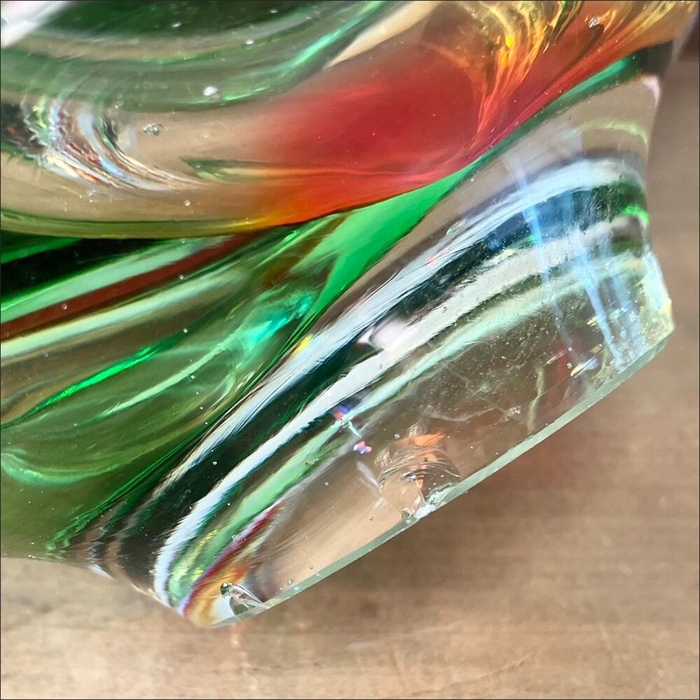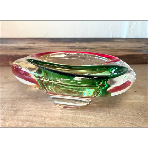 当時の品ならではのモダンデザインが印象的なガラスアシュトレイです。