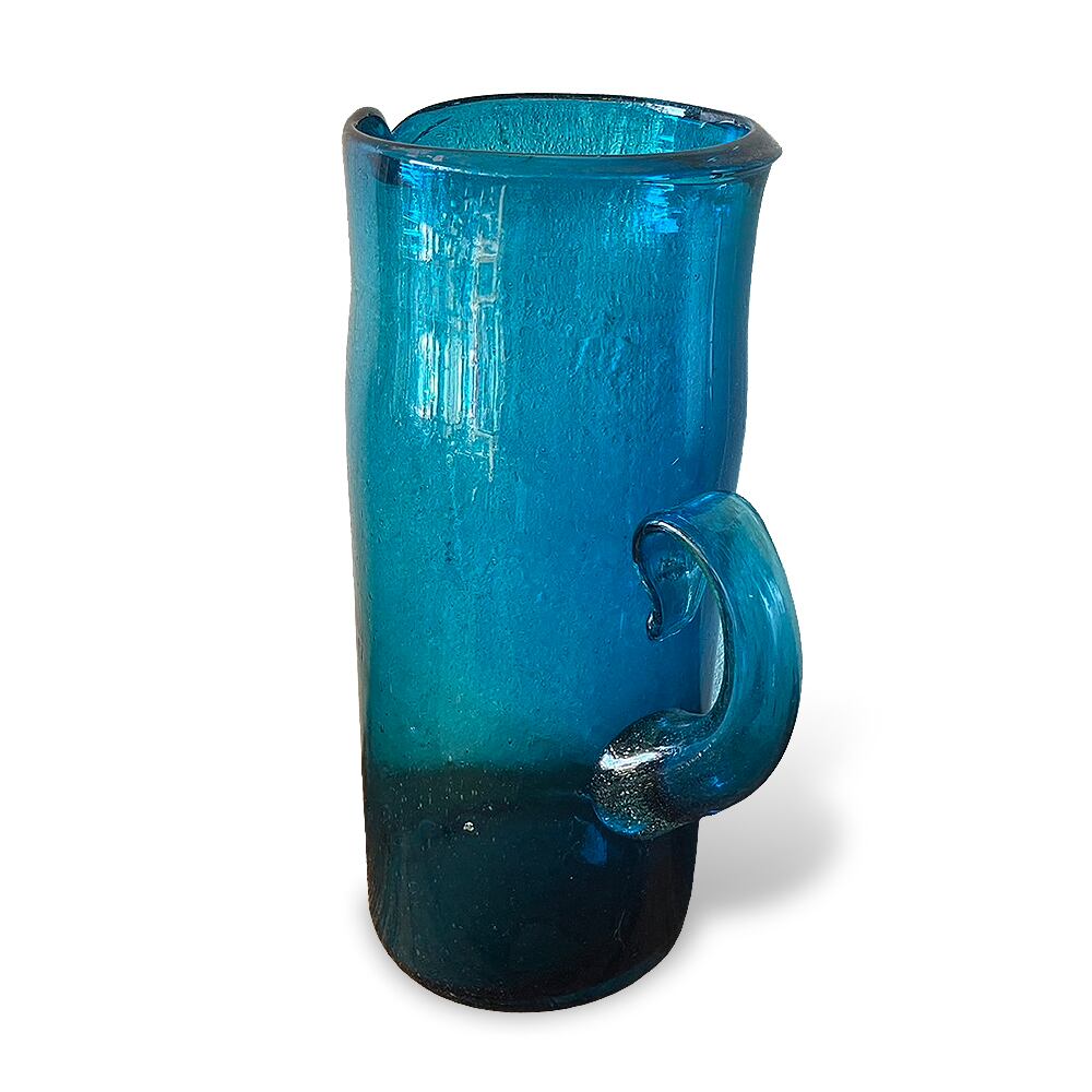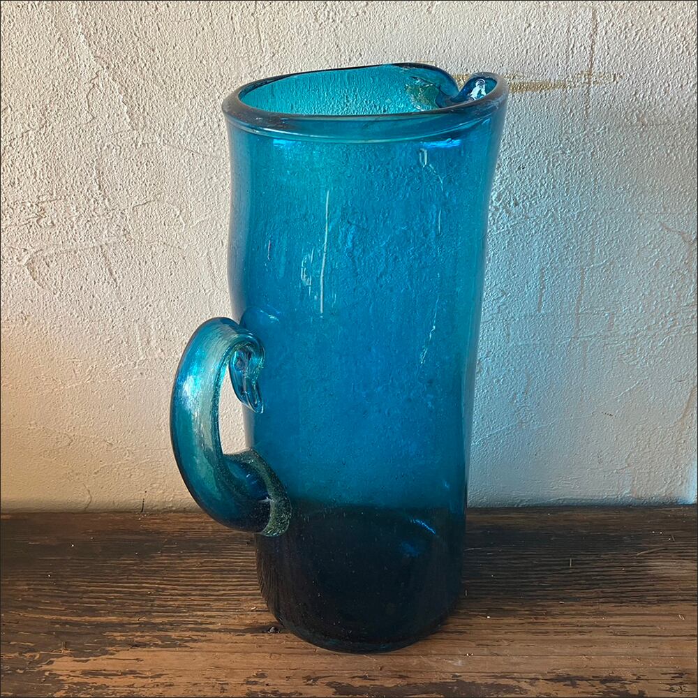 透明感のある青色が印象的でレトロなフラワーベースです。