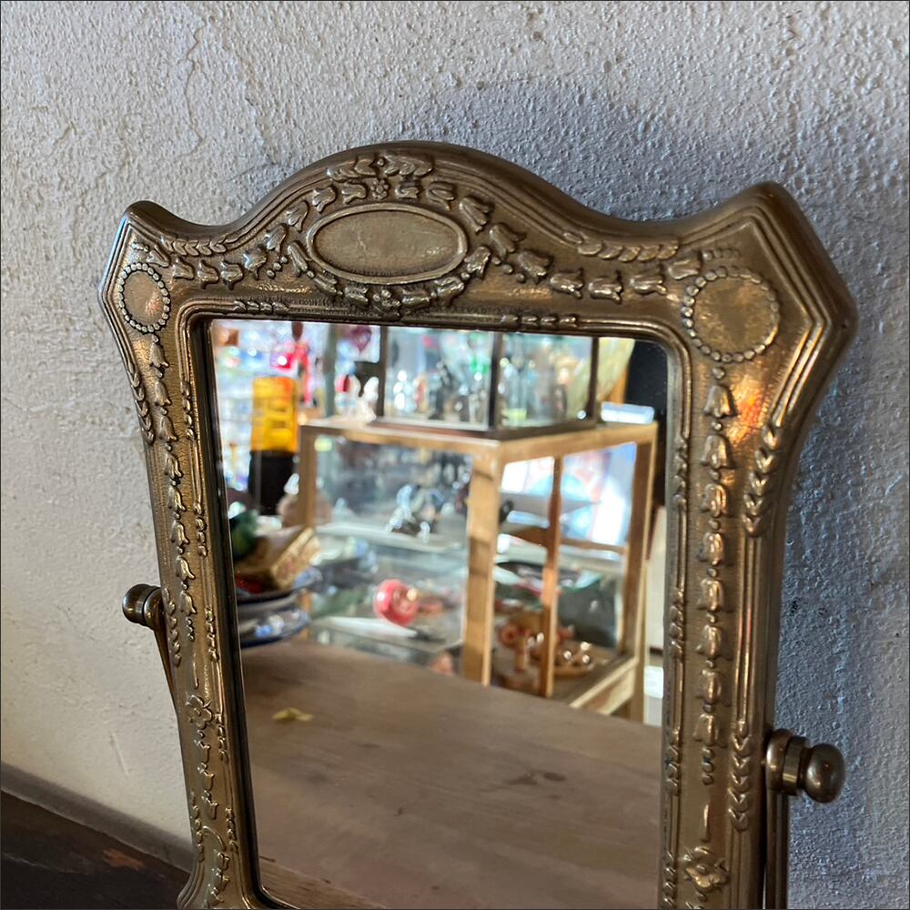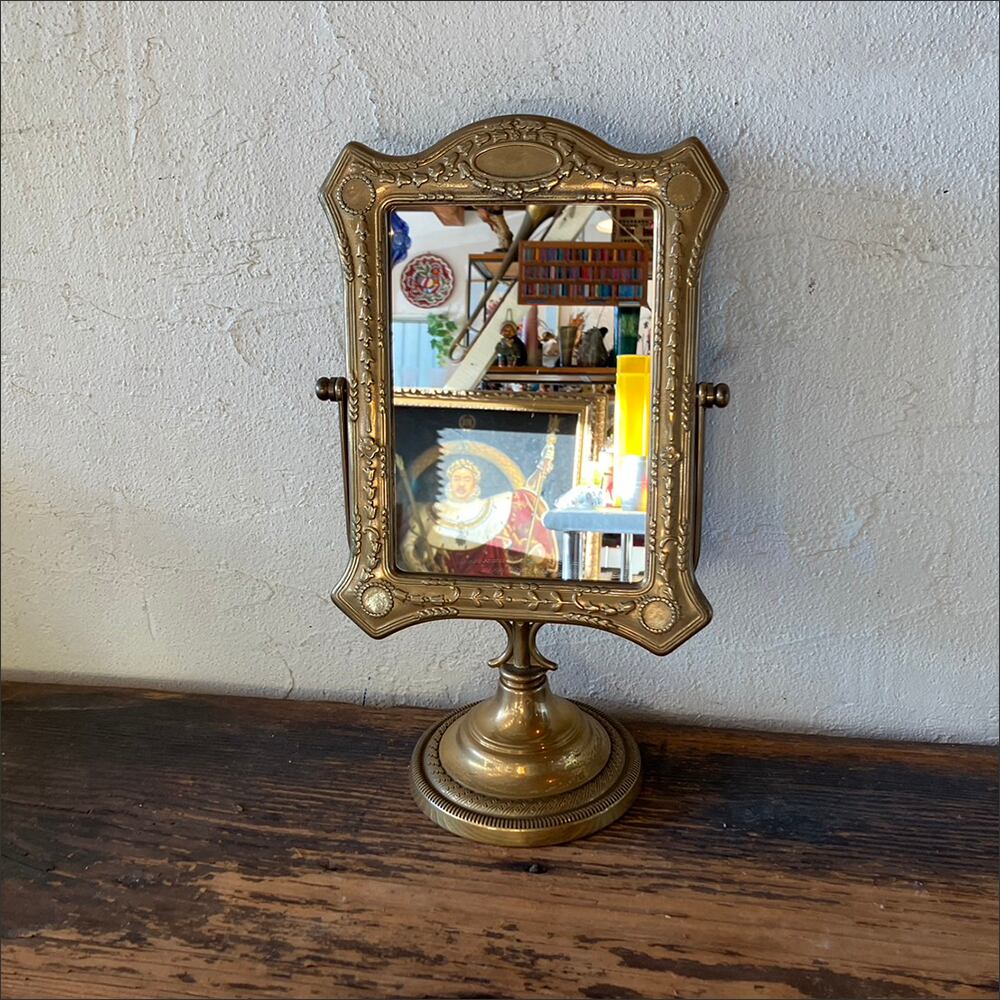 クラシカルなデザインが印象的な真鍮製のスタンドミラーです。